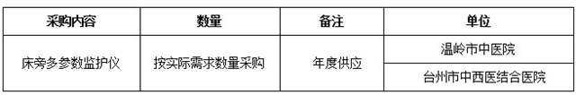 台州市中西医结合医院(温岭市中医院)就年度床旁多参数监护仪采购项目进行公开招标采购,欢迎符合法律法规规定条件的供应商前来投标。