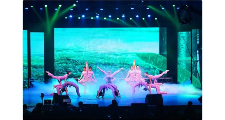 紧接着由医院职工自编自导的古筝、合唱、瑜伽表演、金曲串烧、影视经典桥段配音、歌伴舞等节目精彩上演。绮丽的光影,动听的歌声,真挚的感情,令人如痴如醉,引得全场掌声如雷,将晚会的现场气氛推向高潮。