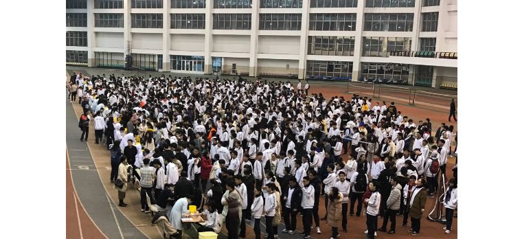 为方便体检同学,保证体检流程的顺利进行,早晨6点半,医护人员早早地到各学校上门为学生抽血化验;中午11点半,全体参检人员放弃午休时间,以高度的责任心认真完成体检工作。