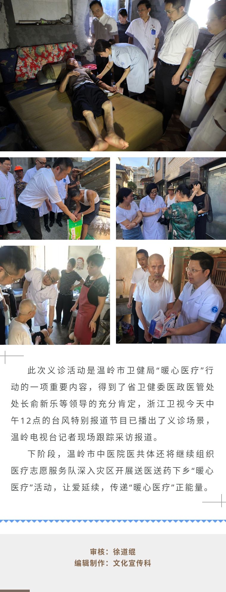 据统计,本次义诊活动接诊群众达200多人次,免费测量血压、测血糖100多人,受益百姓100余人,免费发放了近2000元的常用药品。温岭市中医院医共体用实际行动为受灾群众送上一份爱心。