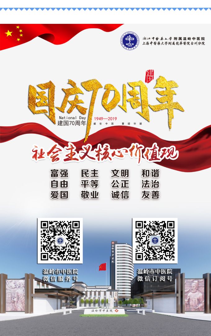 2019年10月19日是浙江中医药大学60周年校庆日。自2012年7月获评为浙江中医药大学附属医院以来,温岭市中医院在医疗服务水平、服务能力、科教研建设等方面有了很大的提升。为营造浓郁的校庆氛围,加强健康和医学知识的宣传普及,推行便民惠民措施,践行暖心医疗理念,特组织院内浙江中医药大学兼职教授、副教授等专家10余人开展免费义诊活动,回馈广大市民。