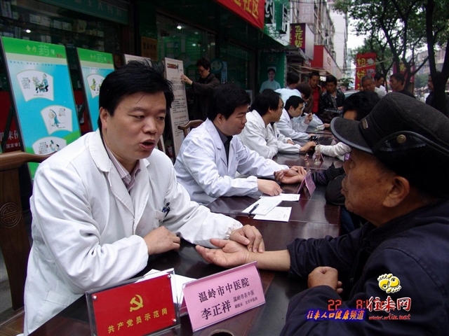 2011年4月22日,温岭市中医院“党员志愿者服务月”活动暨“中医药适宜技术进社区”活动在横峰街道开展。该院李正祥副院长带领针灸推拿科、中医内科、内分泌科、护理部、发展办等相关科室20余位医护人员组成的党员医疗专家队,在横峰中医社区(大德生药店)门口设摊为过往村民义诊。