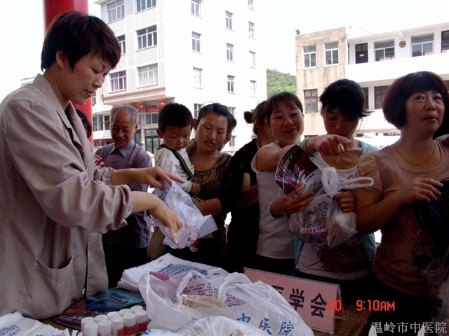 在2011年5月15-21日的“科技活动周”里,温岭市中医院组织中医专家医疗队,送医送药到乡镇村落,为群众送去科普与健康。