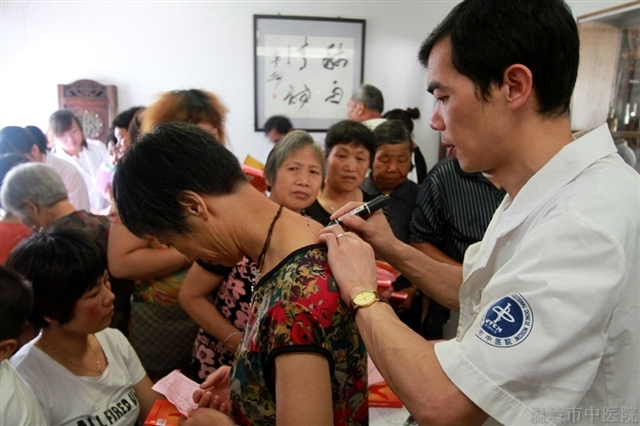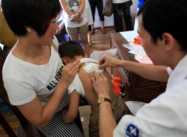 当日是农历小暑,全国“冬病夏治”先进单位浙江省温岭市中医院第六届“冬病夏治”中医文化节开幕,众多患者接受诊治。“冬病夏治”就是对冬天好发的慢性疾病,在夏天利用贴敷天灸膏的方法进行治疗,从而达到增强抗病能力,预防和减少疾病在冬季发作。它是一种中医“治病求本”特色疗法,疗效明显。