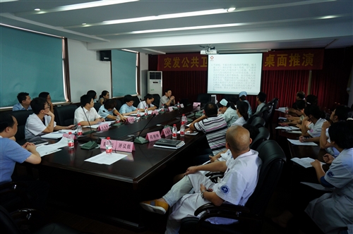 8月22日下午,我院在行政楼五楼会议室举行了突发公共卫生事件应急处置桌面推演。温岭市疾控中心黄宝定主任应邀来院主持推演,他首先介绍了桌面推演的概念和意义,并以急诊科接收4位不同程度的呕吐、腹泻病人的突发公共卫生事件为案例,生动客观地展现了事件的发生、发展及处置过程。推演设置了10道问题,现场询问急诊科接诊医师、出车医护人员、院感科、诊疗专家组等人员处置过程和措施。相关人员每一个环节问题解答后,现场设立的专家点评组对问题解答情况逐一进行点评和分析。
