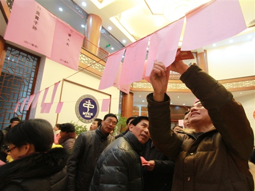 同一天晚上,一年一度的职工元宵游园活动也拉开了帷幕。猜灯谜、夹弹珠、套圈、掷飞镖等传统游戏项目分别在行政楼、食堂等热闹进行。两条喜庆的中国龙合着欢乐鼓舞的鼓乐声在行政楼大厅翻腾,营造了喜庆的节日氛围,令人留连忘返。