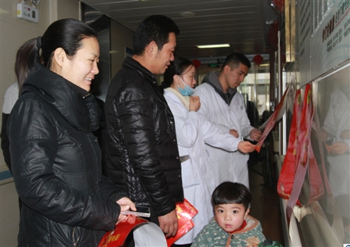 2月13日上午,我院住院部各病区走廊十分热闹,院办在每层病区的楼梯和走道上悬挂了500多条灯谜,邀请住院患者及家属同医护人员一起猜灯谜欢度元宵。这已是我院连续第九年组织医患携手闹元宵活动了。廖女士在外科病房住院治疗,她拿着刚兑换的奖品说:“虽然住院不能回家过节,但医院组织的猜灯谜活动,让我心里暖暖的。”