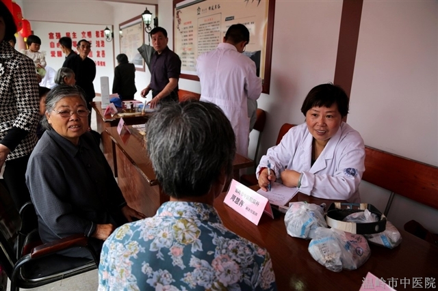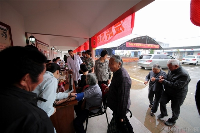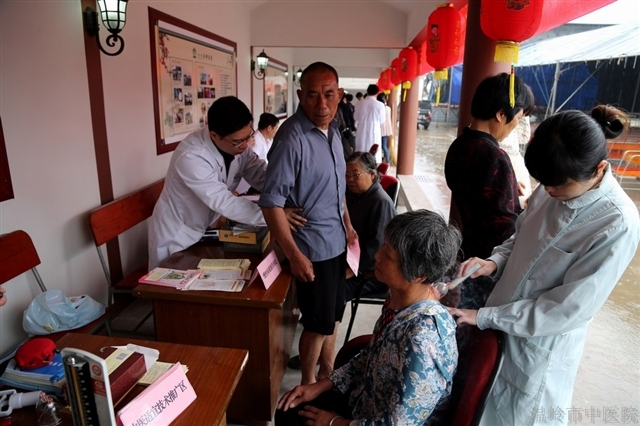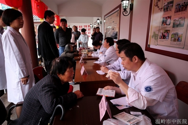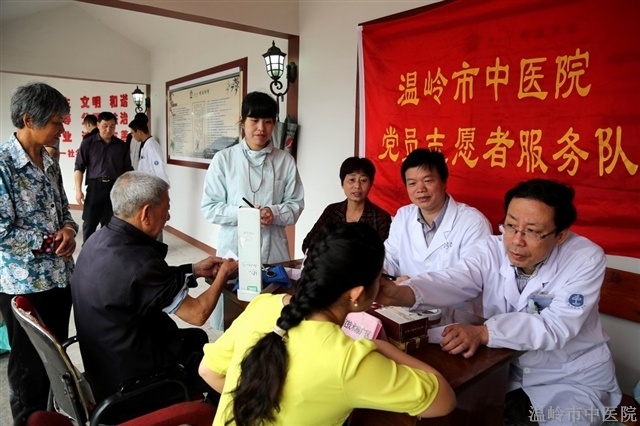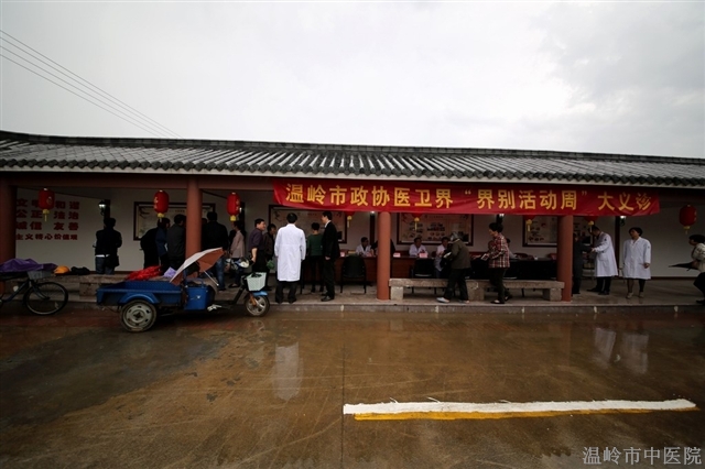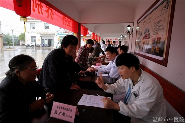 2014年5月14日上午8时,温岭市中医院医疗专家一行15人,在市政协委员李正祥、潘琦的带领下,参与政协界别周活动,冒雨来到滨海镇岱石村开展送医送药义诊活动,受到了村民们的热烈欢迎。