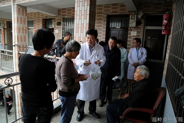 临近中午,主任中医师李正祥、罗国庆带领党员志愿者义诊队伍还深入走访了岱石村老人公寓,对老年公寓中行动不便、无法前来就诊的老人进行健康体检和送药活动。