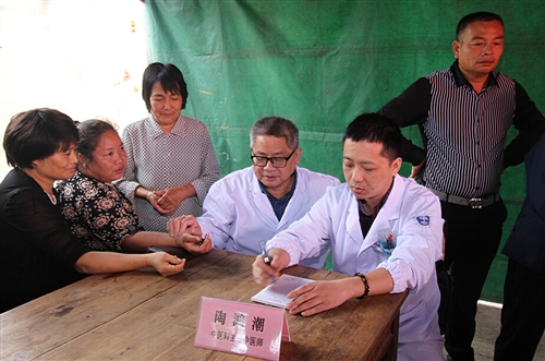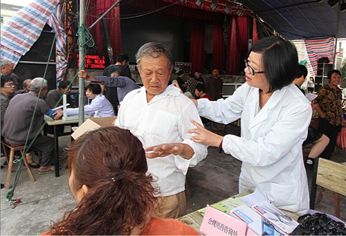 10月12日上午8时,由名老中医陶鸿潮、外科副主任医师潘琦,大内科主任张文娥,皮肤科主任黄文晖、眼科主任周慧萍、肛肠科主任边屯等专家组成的义诊小组一行15人,在温岭市中医院院长陈福春的带领下来到大溪镇大溪岙村开展义诊活动。当载着医疗专家的中巴车一到达村部,当地村民就热情地围拥了上来。