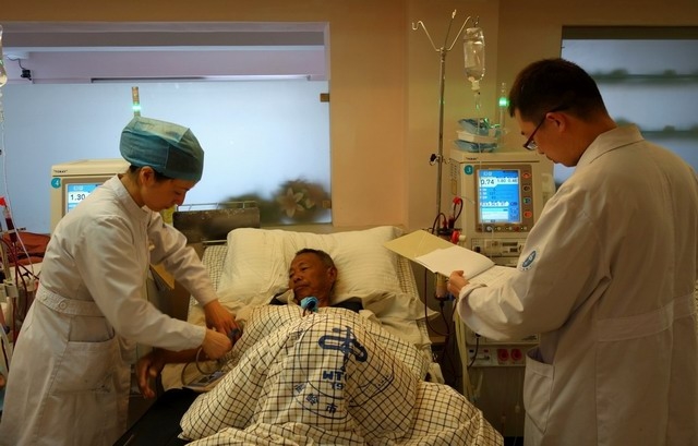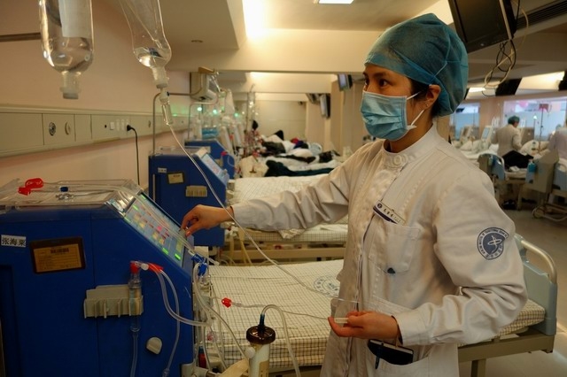当日是大年初一,浙江省温岭市中医院血透中心15名医护人员坚守岗位,为110多名尿毒症患者实施血透治疗,解除病痛。