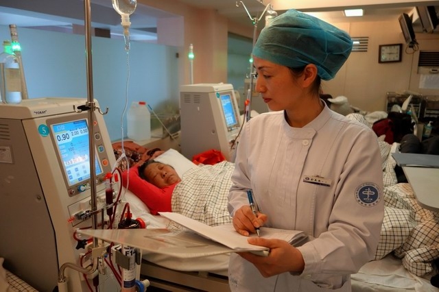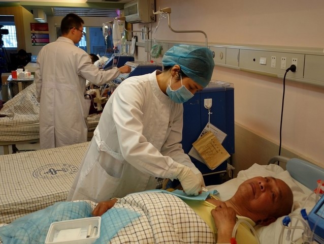 2015年2月19日,温岭市中医院血透中心医护人员正在忙碌工作。