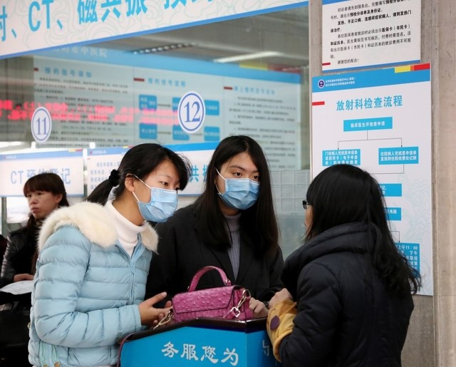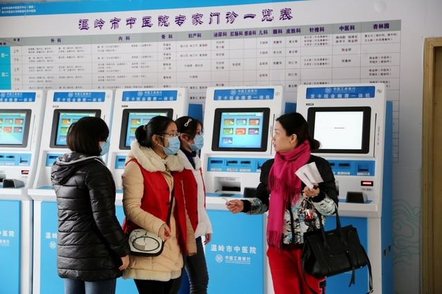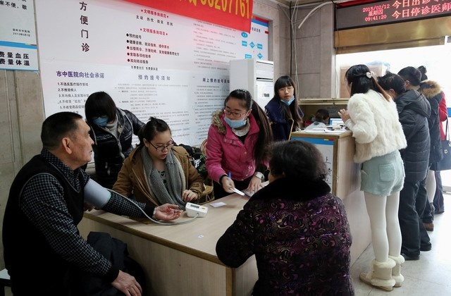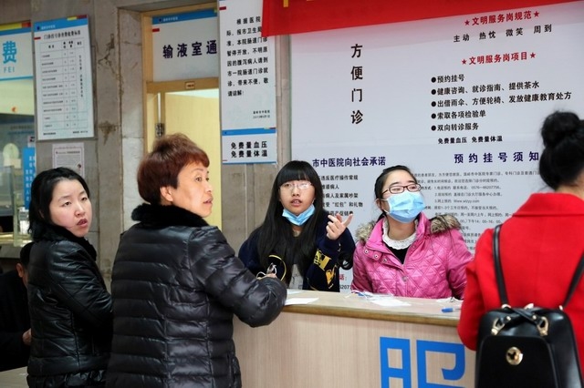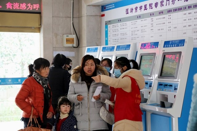 2015年2月12日,温岭中学志愿者服务队在温岭市中医院门诊大厅为病人服务。