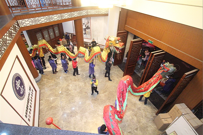 傍晚六点半游园活动正式开场,而此时,天公也作美,雨滴渐止,为游园活动开了个好兆头。伴随着阵阵锣鼓声,两条祥龙便在由医院20余名青年医师组成的舞龙队的挥舞下开始尽情地翻滚舞动。不一会儿,门诊大楼前就围满了医院员工和市民,大家竞相鼓掌欢呼并拍照留念。两条祥龙游完医院后,又沿着鸣远路、镇安路、万寿路和东辉北路,绕游医院一圈,期间不少周边居民被舞龙所吸引,或是驻足观看,或是开窗张望,尽显一派祥和景象。