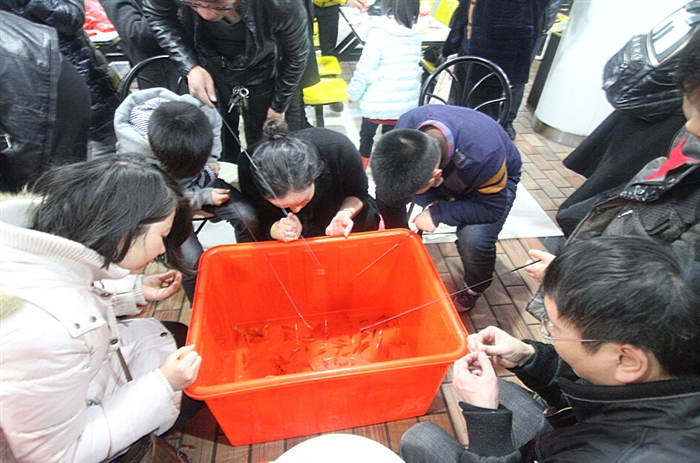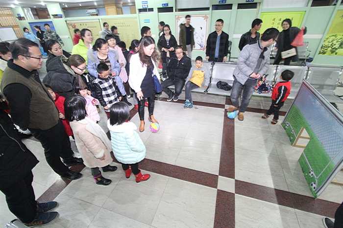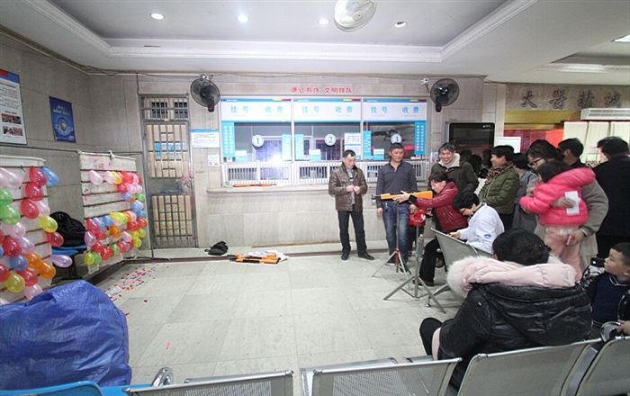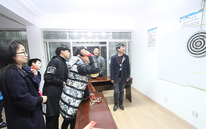同时,在医院行政楼、门诊大厅、体检中心和职工食堂这四个场地,七项游园项目也正式开始。既有传统的“猜灯谜”、“抛绣球”和“套圈”游戏,又有时兴的“射击”、“掷飞镖”和“钓金鱼”,还有可以亲子互动的“点球大战”。
