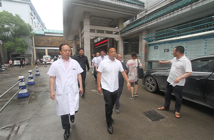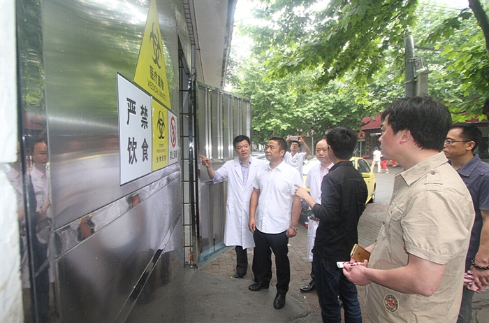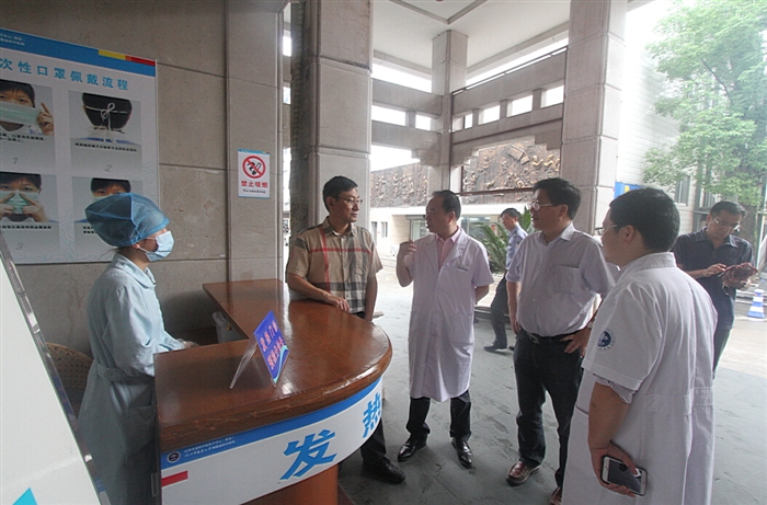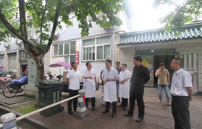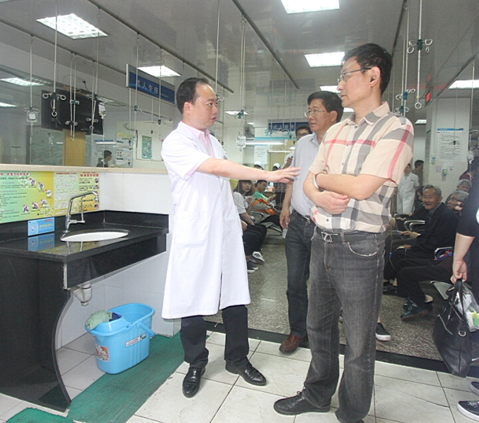王加潮副书记和徐云辉副主任一行,先后到门诊大厅等地检查医院室内和室外的环境卫生状况,重点查看了医院的公共厕所的保洁情况和排水设施、医疗废物处置设施的管理情况。