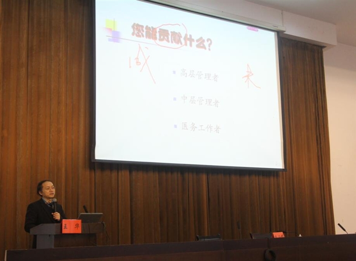 培训会上,王华教授运用生动的语言和经典的案例,阐述了医院高层管理者、中层管理者以及一线医务工作者这三个类别人员的角色定位,归纳了医院学科建设的主要要内容,点明了学科带头人所要承担的工作,提出了医院管理过程中的六大核心理念,解析了医院管理要正视的问题,阐述了医院核心管理的三块基石,即管理体系、信息手段和绩效方案在现代医院管理中的作用。为更好地实现医院管理的目标,他给出了三点建议:一是要医院管理者要做到管理目标清晰化,明确医院组织的管理内容;二是要加强过程管理,把制度和管理目标落实到行动上来,实现劳动效率、组织效率和个人效率最大化;三是要打造医院核心竞争力。