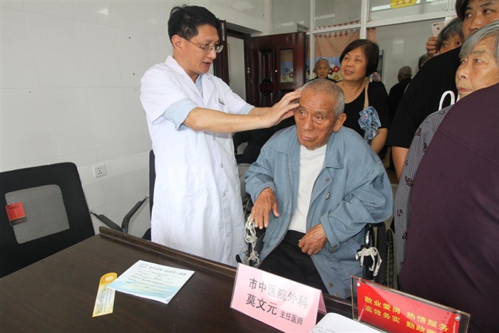 当载着医疗组的车辆缓缓在养老院门口停下时 ,养老院负责人莫中贵就迎上来:“老人们一听说中医院的专家要来给他们看病和检查身体,老早就在活动室里等着了。”