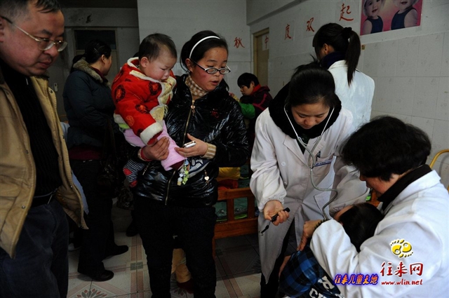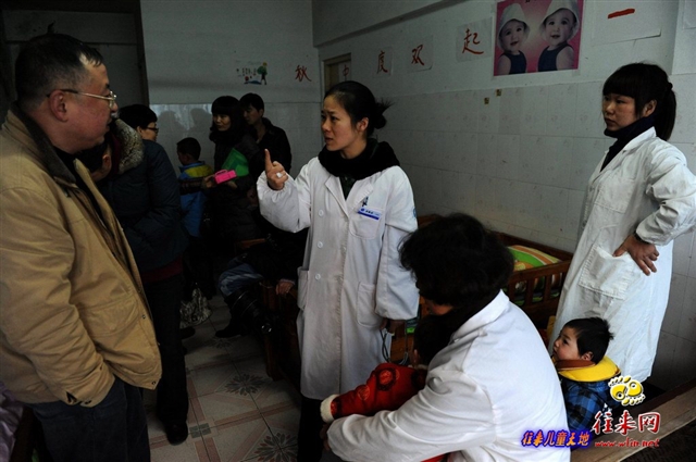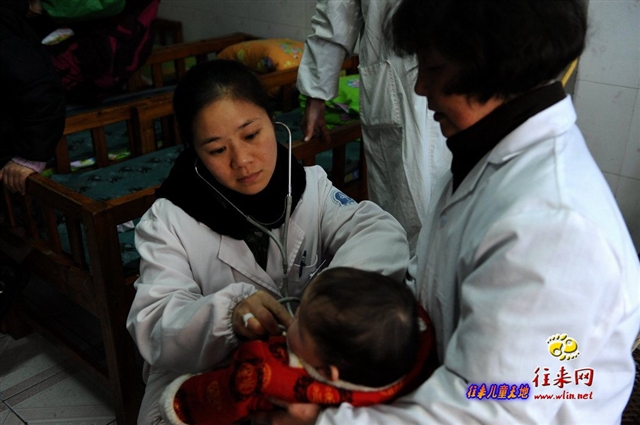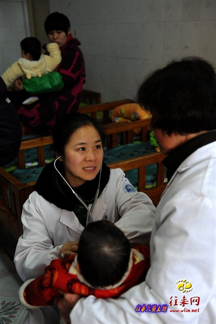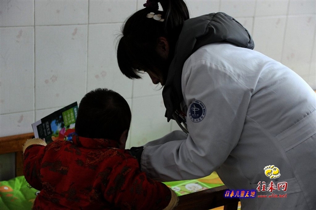 2011年1月26日,温岭市中医院儿科副主任医师金薇瑛在为残疾孤儿体检。