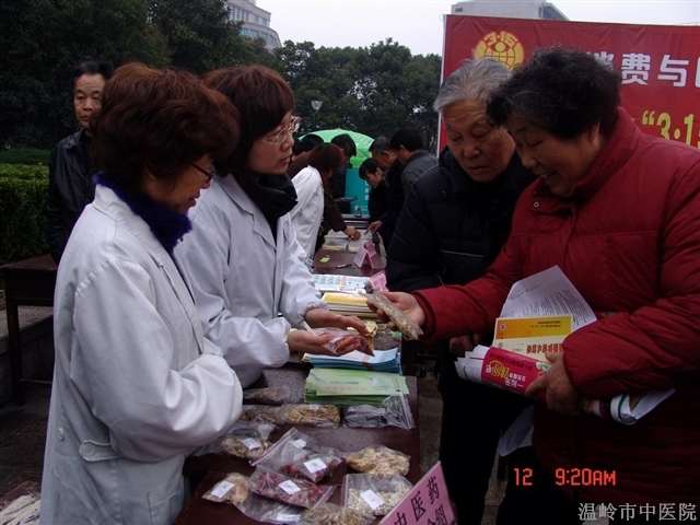 “3.15”国际消费者权益日前夕,浙江省温岭市中医院的中医师和药剂科人员,在当地闹市区街头设点,为过往市民提供伪劣中药材鉴别、合理安全用药宣教等服务。