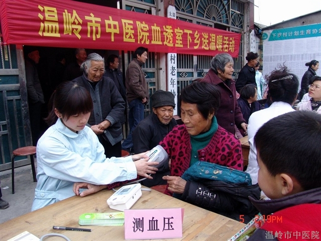 为积极承担公立医院的社会责任,发挥温岭市中医院“省级文明单位”及“市巾帼文明示范岗”的作用,2011年3月5日下午,温岭市中医院党办李进明主任、女工委元国芬主任、血透中心高雪芬护士长,来到城东街道下罗村看望尿毒症患者黄云花和高位截肢病人陈华君,并和该两位贫困患者签订了结对帮扶协议。
