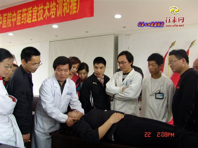 当天午后,义诊活动结束,医疗队兵分两路,李正祥副院长率一医疗分组深入到当地的台州市齐江鞋业有限公司,为该企业职工开展了“中医养生保健和防病”知识讲座,并向工人们赠送了部分常用药品。发展办李云琴主任带领另一医疗组,来到横峰街道卫生院,为该卫生院和街道的数十位乡村医师开展中医药业务知识培训及中医预防保健工作指导。针推科主任王立新、李思斌、王敏三位医师为乡村医生们演示了仰卧拔伸手法治疗神经根型颈椎病、拔罐疗法治疗感冒等传统中医适宜技术,深受乡村医师的欢迎。