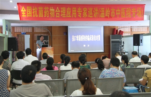 本报讯 8月14日下午,由中华医学会、中华全科医师杂志社组织主办,我院承办的“全国抗菌药物合理应用专家巡讲(温岭市中医院专场)”在门诊七楼举行。巡讲团专家江苏省人民医院呼吸科殷凯生教授、广东医学院药理学教授陈方为来自我院、市一院及乡镇卫生院的300多名临床医师、药师作了专题讲座。