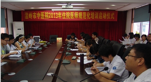 日前,浙江省中医住院医师规范化培训基地温岭市中医院,启动了2013年度中医住院医师规范化培训工作,来自浙江台州市各大医疗机构的30多名中医药专业学员,将在该院接受为期三年的中医住院医师规范化轮训。