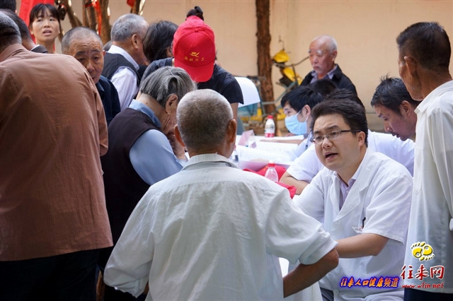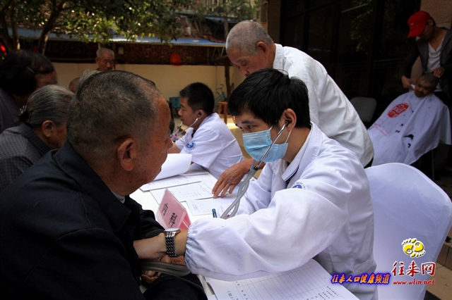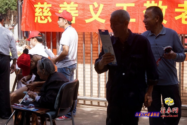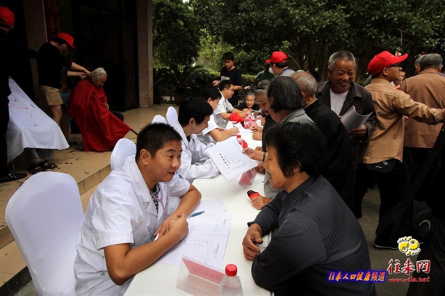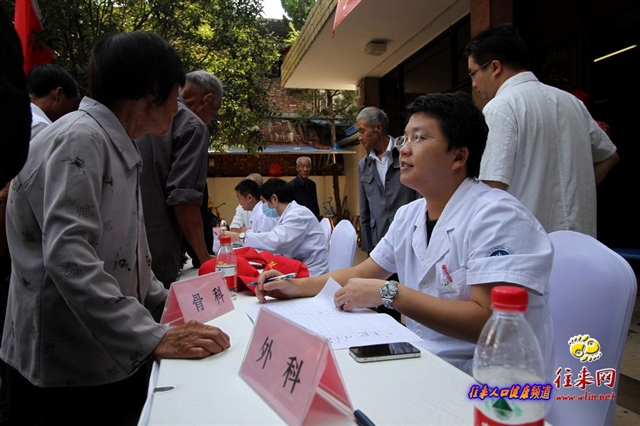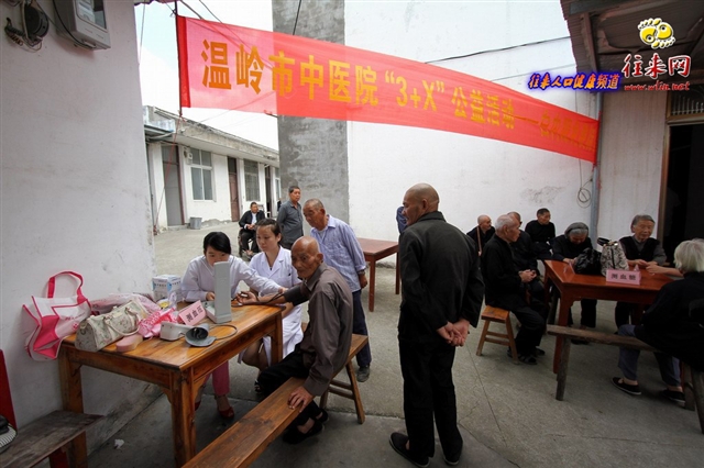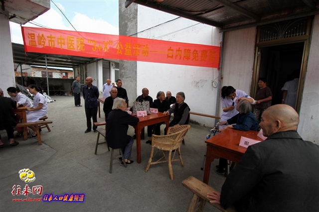 大溪镇潘郎惠民老年活动中心大院里,老人们围坐在U字型的门诊台前,分别接受测血糖、量血压、外科、内科、骨科、中医内科、眼科等检查,并根据需要领取免费药物和健康资料。鲍哲、张霄鹏、汪强、章林益、金宏等医师为老人们悉心检查后,为近50位体检后的老人建立健康档案。温岭市中医院眼科金宏医生还逐一为前来就诊的老人作了白内障筛查。