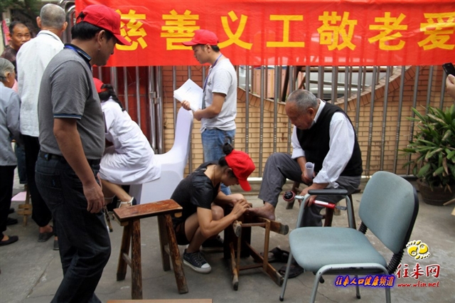 2013年10月13日上午,温岭市中医院党员志愿者服务队一行13人来到大溪镇潘郎惠民老年活动中心,参加市慈善总会联合举办的“重阳爱心行”活动。温岭市慈善总会的重阳爱心行活动已开展了9个年头,今年,60多名义工分成3队来到各个敬老院,为160多名老人送去礼物,并帮老人剪头发、修理指甲。