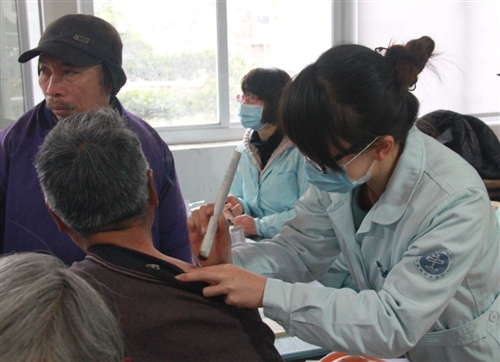 “医生,我有高血压,我最近经常头晕,你帮我瞧瞧”、“医生,我的肩周炎贴了很多膏药都不管用,最近又酸麻胀痛了”……很多村民得知这次义诊活动,都早早的在社区服务中心门口排队。
