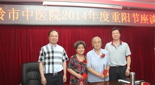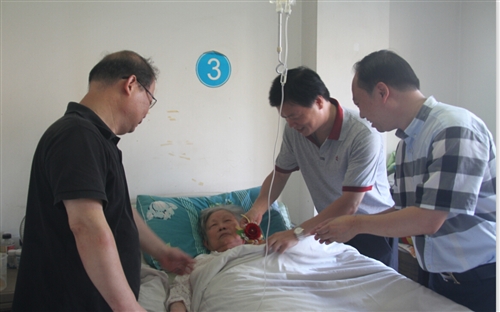 座谈会由党总支李正祥书记主持,执行院长徐道昆首先向离退休老同志祝福节日,并向大家汇报了医院1-8月份业务运行情况,希望老同志在保重身体安享退休生活的同时,继续关心支持医院发展。随后,徐道昆、李正祥两位院领导分别为陶鸿潮、粱小初、孙惠娟、戴耿琴等8位70、80岁以上的老寿星举行祝寿活动,给他们戴上红花,送上慰问金,祝福老人们健康长寿重阳节快乐。离退休职工俞彩英、张一波老人因病住院,两位院领导在退管会干部的陪同下到病房看望了两位老人,祝福他们早日康复,并送上节日祝福。