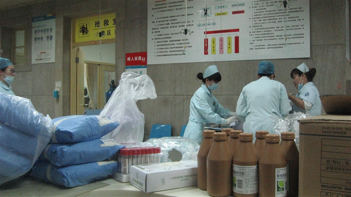 执行院长徐道绲、副院长陈亨平、院长助理季灵正等领导坐镇医院急诊科,召集ICU、内科、外科、骨科等科室主任组成院内医疗救助专家组,并第一时间抽调了在家休息的ICU、神经外科、骨科、外科、内科、麻醉科、手术室等主要科室60余名骨干人员赶回医院,组成院内医疗救助梯队和后备增援梯队。15分之内,很多周末在家休息的医护人员都赶到了医院,60余名骨干人员组成院内医疗救助组和后备增援组在院等候。按照预案,大家分头开展急救药品、器械等准备。