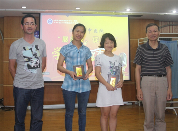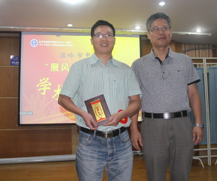 浙江中医药大学的医管处骆永忠科长,市委组织部人才办陈恩明主任,市科协卓法明主席,市卫计局张宪法副局长,温岭电视台莫文广副台长,市教师进修学校梁君利讲师,集团主任、温岭市中医院院长陈福春,温岭市中医院执行院长徐道绲等领导担任现场评委并为获奖选手颁奖。