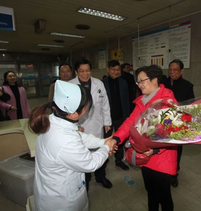 “给大家拜年了!”“大家辛苦了!”在急诊各科室、输液大厅,朱明连一行与值班医护人员亲切握手、交谈,送上鲜花和慰问品,为辛勤工作在急诊一线的医护人员表示衷心的感谢。她还关心地询问了值班期间患者就诊、医疗救治等详细情况,嘱托大家继续以这种高度的责任感,努力确保患者的医疗安全,并在新的一年里团结协作、努力工作、再接再厉,积极推动医院各项工作上新的台阶。