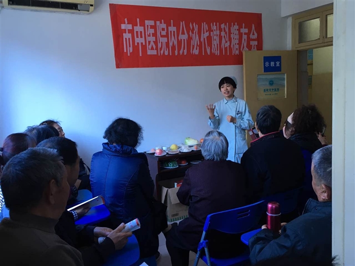 4月19日下午,内五病区举办“糖友会”。该科护士长邱菊萍就“糖尿病患者如何吃的健康吃的科学”这一主题开展讲座,与糖尿病病人交流,受到糖尿病患者和家属的欢迎。