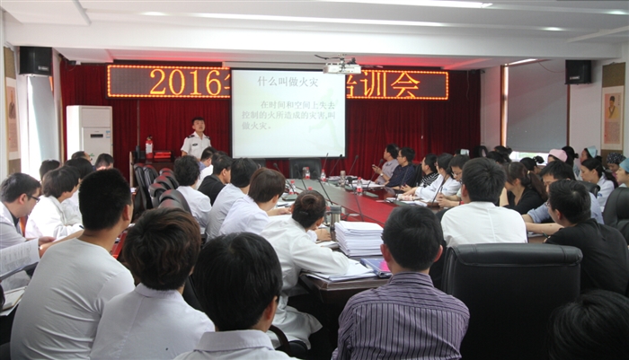 为了提升全院上下的消防意识并更好地掌握消防知识,5月17日下午,医院邀请杭州六进消防的教官,在行政楼5楼会议室举行消防培训会。培训会上,教官讲解了火灾的种类和对应的处理方法,并介绍了多种消防器材以及这些消防器材的使用方法和功能,还进行了现场消防知识问答互动。院领导徐道绲、李正祥、陈亨平、潘琦和季灵正,以及全院中层以上干部共120余人参加培训。