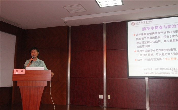 市卫计局副局长张宪法到会致辞,杭州市中医院院长杨勇教授、浙江省中医院陈眉教授、浙江省新华医院周旭文教授三位专家受邀,先后就《中医“治未病”之5D视角及实践》、《脑卒中的筛查与防治》和《2型糖尿病中医健康管理技术规范解读》等中医药健康知识为学员作精彩讲解。通过讲座和现场示范,使学员们的中医药健康管理理念得到了更新,也令更多中医适宜技术得到推广与应用。