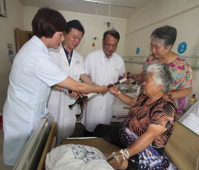 “真是太感谢你们了,有了这个四脚拄杖,阿婆下床行走就方便多了”,正在陪护彭阿婆的家属说。